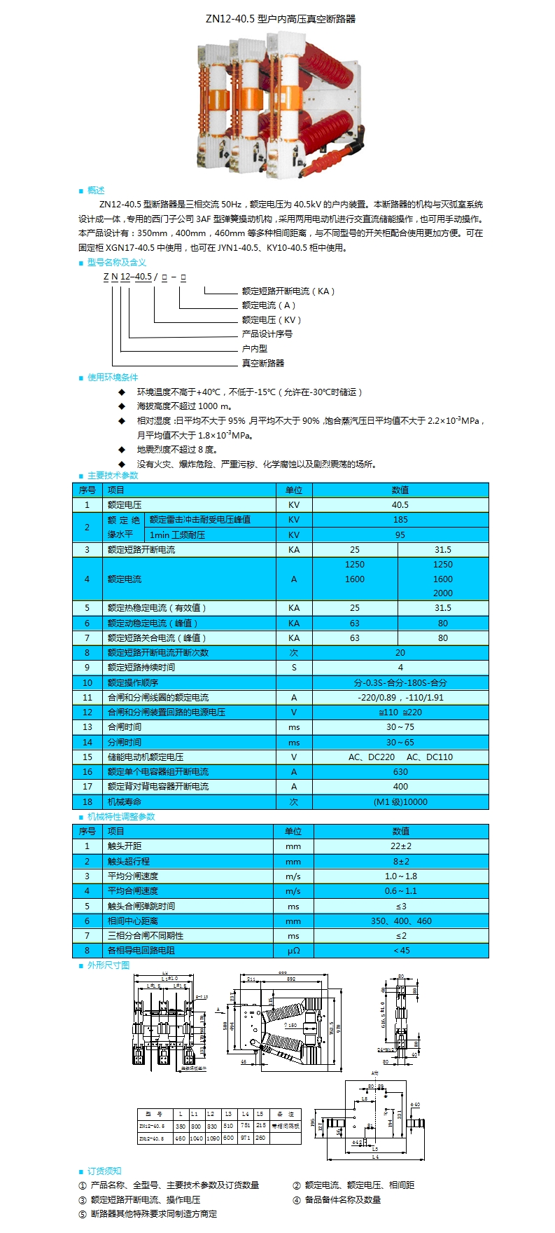 ZN12-40.5型戶內高壓真空斷路器