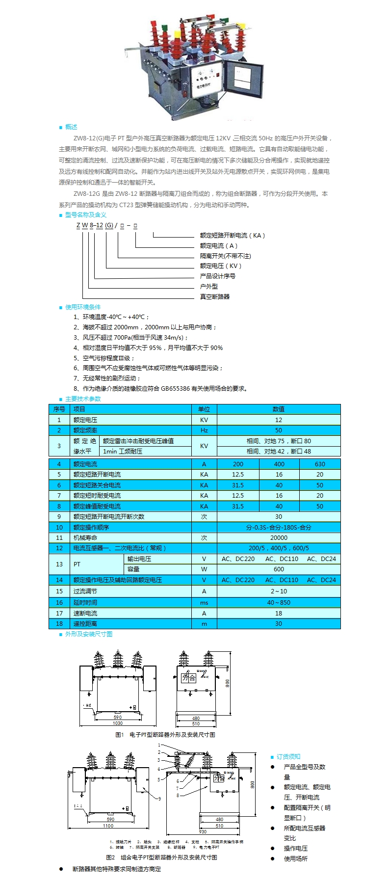 | ZW8-12(G)電子PT型戶外高壓真空斷路器 | |